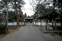 参道突き当りに、白壁に囲まれた境内があり、鉄の扉が付いている。
