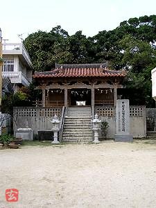 正面に沖縄独特の瓦をのせた社殿がある。