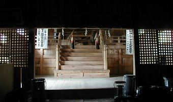 拝殿後方に本殿覆屋が一体となっており、本殿の造りは確認できず。