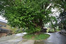 入口鳥居の左手に大きく枝を伸ばした立派な木があり、
