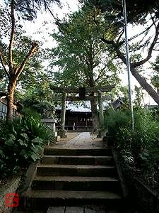 都市部にある神社だが、木々も多く、背後の杜も深い。