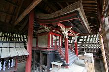 拝殿後方の階段上に本殿覆屋