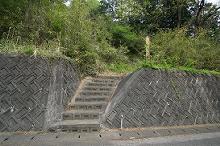 車道脇に、小さな階段があり、階段を上るとある。