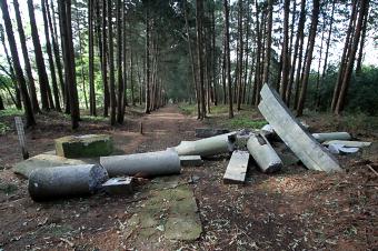 参拝した2011年4月29日現在、倒壊して粉々になっていた。
