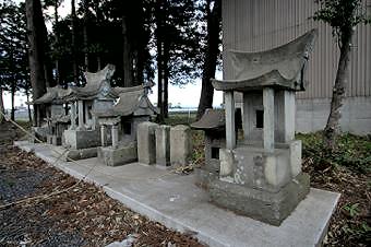 並ぶ石祠の右端に、鈴木源之丞命を祀る喜国神社 |