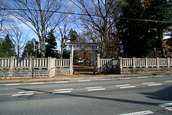 403号線の東側に当社境内がある。