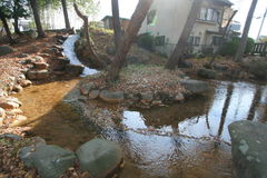 境内右手に池があり、勢いよく水が流れ込んでいた。