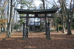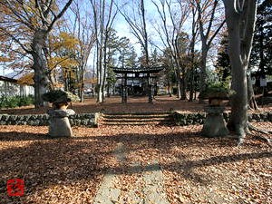 カサカサと枯葉を踏みながら参道を歩くと、境内中央にも鳥居が一つ。