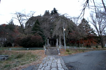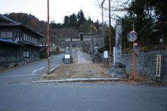 153号線から北へ入り、小学校の脇の道を進むと参道入口。