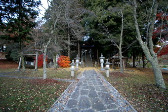 鳥居をくぐり、なだらかな参道を上ると社域の杜。