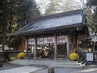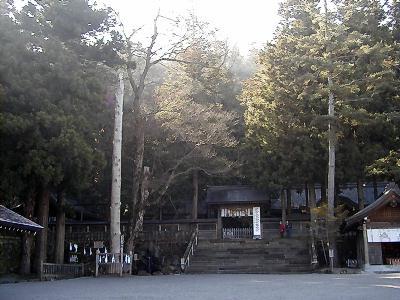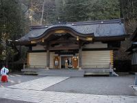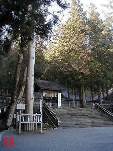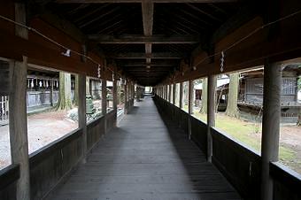 屋根つきの廊下(布橋)を西へ進み、入口門をくぐって、東へ戻り拝殿。