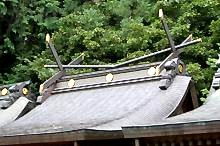 一般の勝男木は、屋根の嶺に直角に並んでいるが、