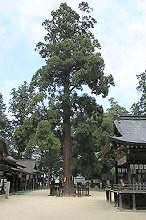 拝殿横の御神木・孝養杉 ![]() | 阿曇比羅夫之像 ![]() | 若宮そばの欅 ![]() |