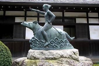 境内に「日光泉小太郎」の像がある。