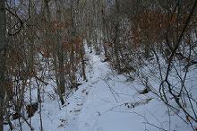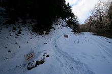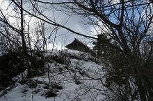 雪のつづら道が続く ![]() | 稜線を歩くと山頂の祠が ![]() |