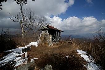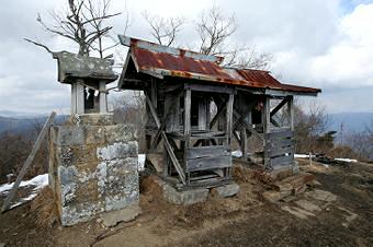 山頂は少し開けており、石の祠が一つと木の祠が二つ。