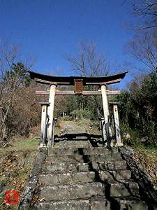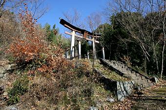 少しのぼった場所に当社の鳥居が立っている。