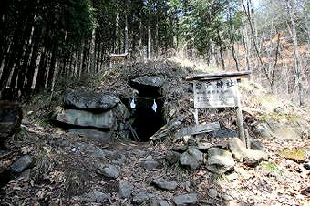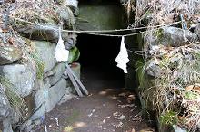 車道脇に小さな古墳があり、岩戸神社(天照皇大神)として祀られている。