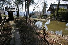 神門をくぐると、右手にクロサンショウウオ産卵地である池があり、