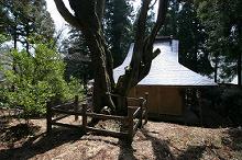熊野出速雄神社本殿の後方には御神木のヒムロビャクシン。