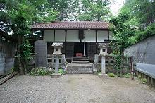 小学校を過ぎたあたり、道がカーブしている場所に境内。
