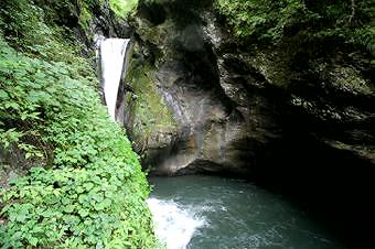 トンネル ![]() | 中央部に滝見穴と祠 ![]() |