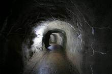 真っ暗な岩のトンネルだが、人が近づけば内部に照明が灯るようになっており