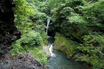 概要おみかの滝は上ん渕、中ん渕、下ん渕と呼び、甕 状を呈し三つの滝壺からなっている。中ん渕は、最 も大きいもので高さ十六米、幅十四米、長さ二十七 米、水深七米、である。他の二つの滝と合わせて三 甕の滝を呼ばれ、春の新緑、秋の紅葉とすばらしい 景観を誇らしげにみせている。 伝説 むかしむかしのことです。この村におみかという、 それはそれは美しい気立てのよい娘がある家に嫁い で来ました。 ところが、しゅうとめはおみかが持ってきたきれ いな着物が欲しくなり、次第におみかまで憎むよう になりました。 ある日のこと、しゅうとめはおみかを滝に連れて 行き、「そら、あそこに不動さまが・・・・・」と 叫びました。しかしおみかには不動さまが見えなか ったので、もっとよく見ようと滝に近づいてふちか ら身を乗り出しました。 一心にのぞきこんでいるおみかを、しゅうとめは 後から滝つぼへ突き落してしまいました。 悲しんだおみかが、その後ドジョウに化身して現れたため、 しゅうとめはおみかの霊を慰めるため滝に祀り、それ以後 その滝を「おみかの滝」と呼ぶようになったそうです。 −境内案内板− |