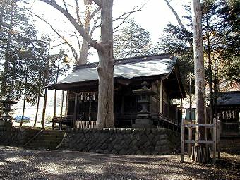 諏訪湖の西南、北有賀の小丘上に鎮座する。境内はまさに景勝の地で、西は有賀峠、東は諏訪市一円