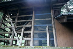 拝殿の後方の本殿は覆屋根の下にあり、横から見ると流造だとわかる。