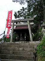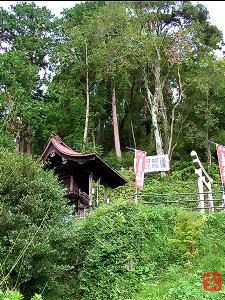 「金毘羅大権現」と染められた幟が立ち、流造の祠がある。