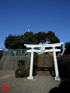 社前に白くて新しい鳥居が立っていた。
