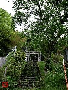 本殿の後方に、朽ちた階段(らしきもの)があり、