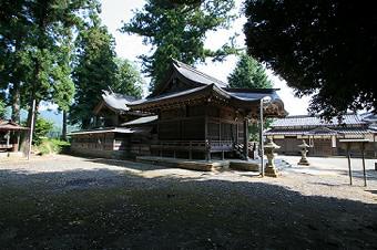 荘厳な本殿及び拝殿を建立された現在の建物は大正九年氏子の寄進により 三ケ年の歳月を賞して再建したものである 尚本殿西に現存の校倉造の宝庫は近在 唯一のもので享保十四年(一七一六)の造営に よるもので非常に高い文化資料と称されている 当神社は五穀豊饒(穂赤熟)の神としても名 高く豊富庄を中心とした十三地区民の 崇敬をあつめ雨乞の練込みは今もって 我々の記憶に新である 例祭は十月 丹波忠重朝臣の和歌 大江山昔のあとの絶えせぬは 天照神もあわれとや見む −境内案内板− |