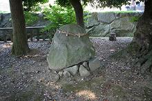 また、境内隅に注連縄で祀られた岩があるが、磐座だろうか。