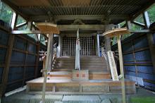 拝殿はなく、本殿に覆屋根を設置しただけのもの。