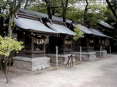 参道左猿田彦大神 猿田彦大神 ![]() | 本殿左に並ぶ末社、手前から順に 菅原神社、人丸神社 志賀神社、船玉神社 ![]() |