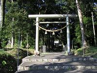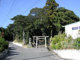 神域があり、南向きの鳥居が見える。