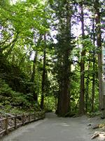 欝蒼と巨木の茂る参道を歩くと、境内下の鳥居。