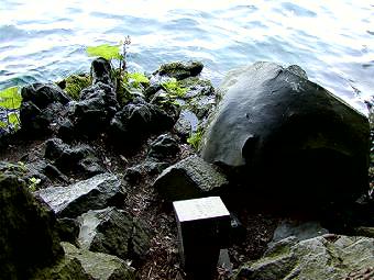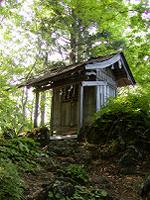 休屋にあった一宮 岩の上に祠が二つ ![]() | 休屋奥に参道入口 ![]() |