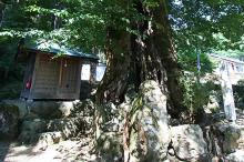 社殿の右手に、天然記念物の大きなムクの木があり、