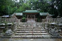 境内奥、石段の上に見事な社殿が並んでいる。