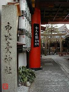 女人守護 市場守護 市比賣神社 御祭神 神大市比賣 多紀理比賣 市杵島比賣 多岐津比賣 下光比賣 御鎮座 当社は 延暦十四年(七九五)に 桓武天皇の勅命により藤原冬嗣公が 堀川・七条(現在の西本 願寺)の地に 千三百坪を境内として御鎮座され 天正十九年(一五九一) 豊臣秀吉により現在の 地に御遷座されました 御本殿は 『北向き』に建てられ 神社建築としては大変珍しく 天正の御遷座の折り 皇室守護 の神社として御所を望み 北向きにされたと伝えられます。 二十一年目毎に御本殿を建て替える 『式年造替』の制度が有り 公家・花山院家、足利将軍家に より幕末まで行われていました −由緒リーフレットより− |
