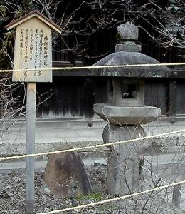 珍しい織部灯篭、足にマリア像を刻んだキリシタンの灯篭だ。 |