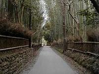 天龍寺を左手に見て北上し、角を左折して竹林を歩く。