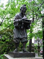 その横に、油を運ぶ油祖の像が立っている。