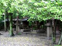境内左手には石と境内社が並ぶ