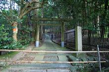 鳥居をくぐった参道には獣除けのフェンス。