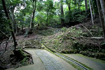 フェンスを開け、参道を緩やかに登ると突き当りに階段。