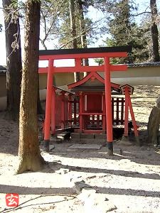 朱の鳥居の奥に、朱の垣に囲まれて小さな祠がある。